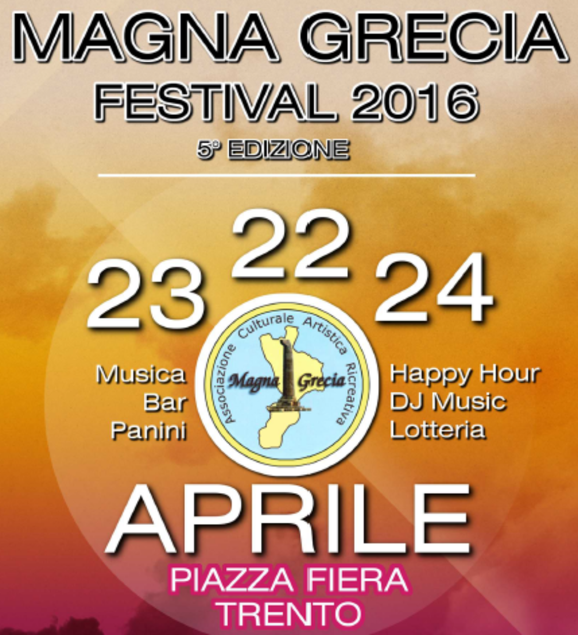 Organizzato dall’associazione culturale Magna Grecia di Trento il Festival propone alla città di Trento tre giorni di musica, sapori e tradizioni calabresi.