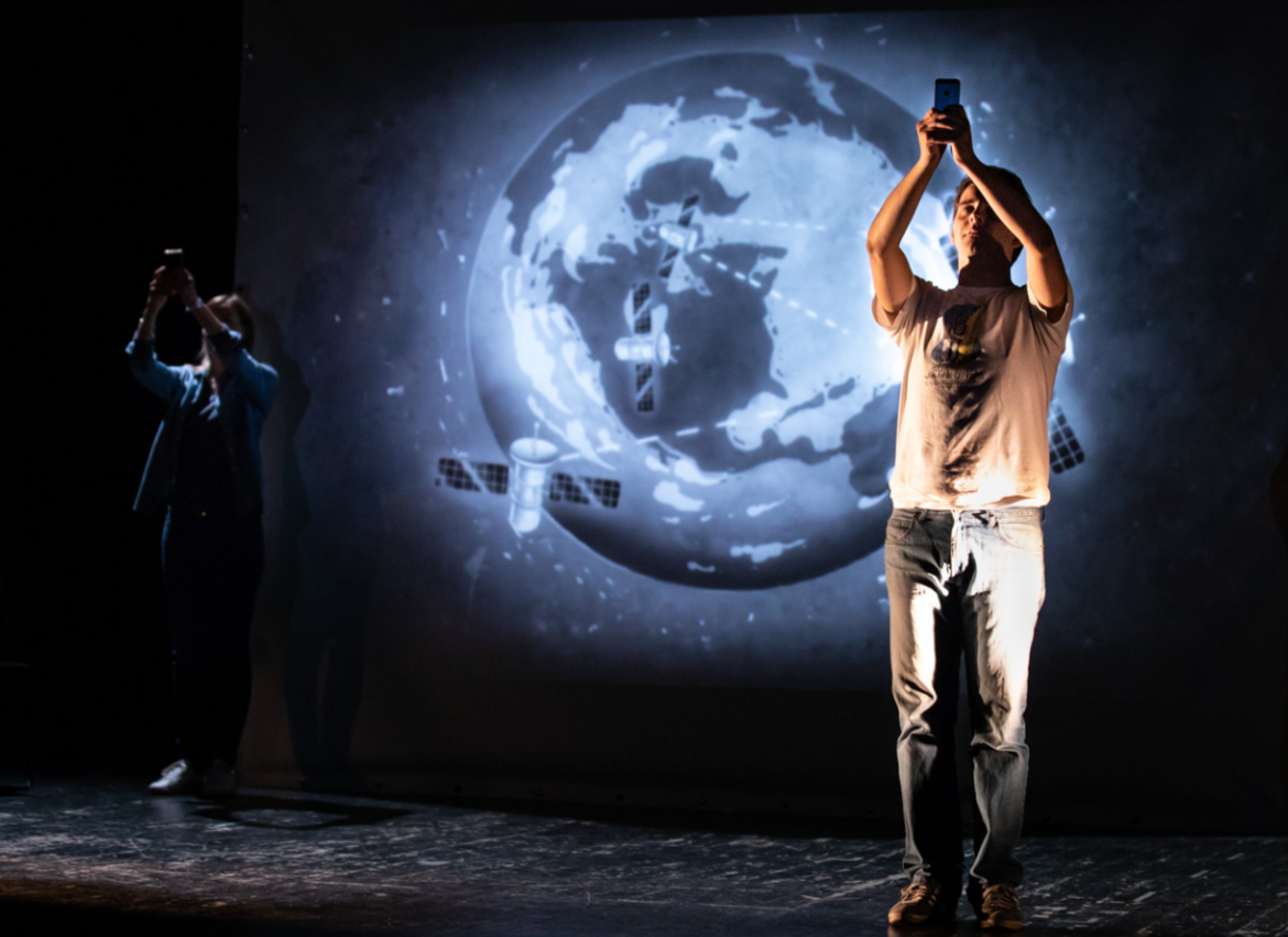 Il gioco dei protagonisti della storia, anzi, la loro relazione, per niente facile, spesso cercata e desiderata, spesso odiata, con il cellulare, i rapporti tra il padre e i figli e cioè tra chi vede nel cellulare soprattutto i rischi e coloro che ne vedono invece una serie di molteplici possibilità, diventano sulla scena non solo rapporto tra gli attori, ma anche rapporto e relazione con quello schermo che sulla scena è spesso più luminoso e sicuramente più grande ed evidentemente più pieno di possibilità dell’attoreessere umano.