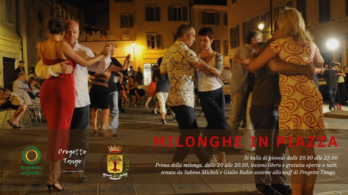 Tornano le milonghe in piazza organizzate in collaborazione con il Comune di Rovereto e con il sostegno del Consorzio Rovereto INCENTRO.