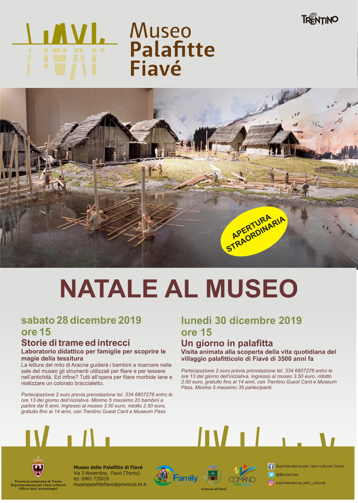 Partecipazione 2 euro previa prenotazione tel. 334 6807276 entro le ore 13 del giorno dell’iniziativa. Ingresso al museo 3,50 euro, ridotto 2,50 euro, gratuito fino ai 14 anni, con Trentino Guest Card e Museum Pass. Minimo 5 massimo 35 partecipanti.