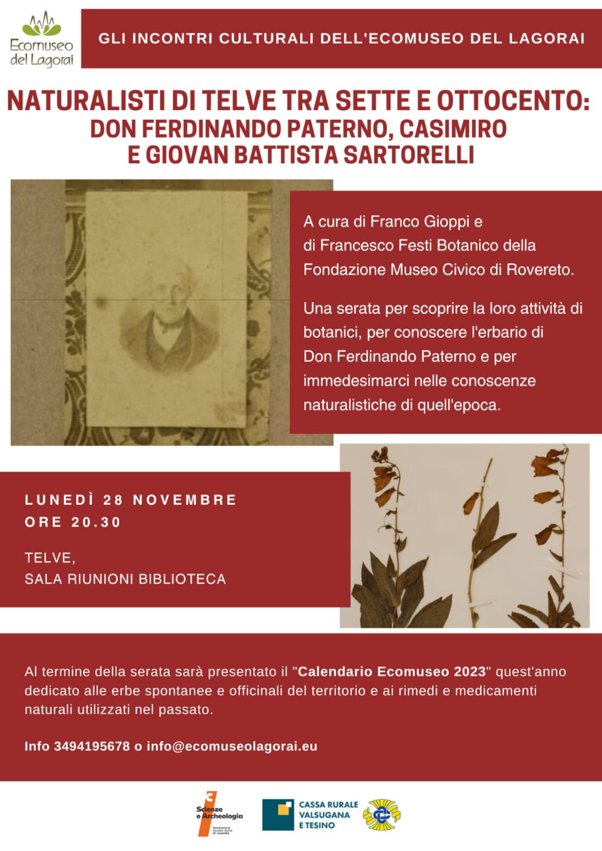 L'Associazione Ecomuseo del Lagorai proporrà una serata dedicata a raccontare la storia dei due fratelli botanici di Telve Casimiro e Giovan Battista Sartorelli.