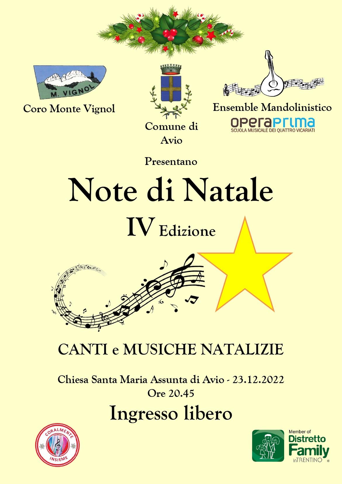 Il Coro Monte Vignol di Avio è lieto di invitare al concerto "Note di Natale IV° Edizione" in collaborazione con l'Ensemble dei Mandolini dell'OperaPrima, patrocinato dal Comune di Avio (TN).