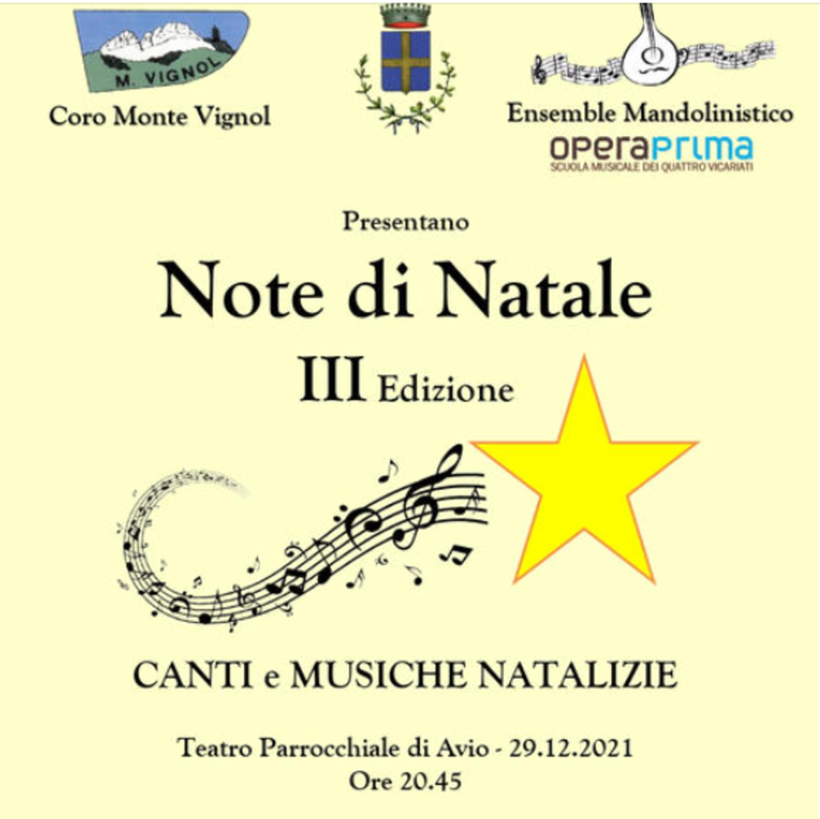 canti e musiche natalizie in collaborazione con l'Ensemble dei Mandolini della Scuola Musicale dei Quattro Vicariati OperaPrima con il patrocinio del Comune di Avio - TN.