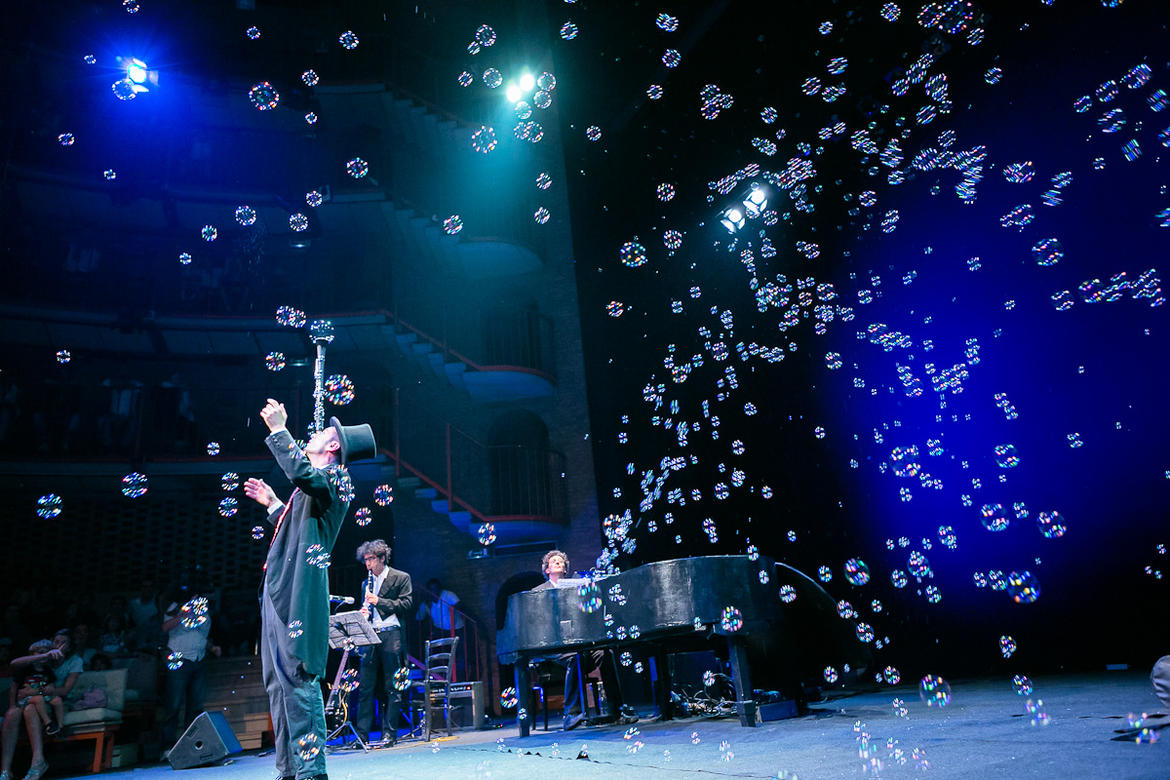 Un eccentrico direttore d'orchestra vi porterà nel mondo fragile e rotondo delle bolle di sapone per un "concerto" dove l'imprevisto è sempre in agguato: da strani strumenti nascono bolle giganti, bolle rimbalzine, bolle da passeggio, grappoli di bolle, mentre i più paffutelli potranno entrare in una bolla gigantesca! Un racconto visuale senza parole che trae ispirazione dalle atmosfere circensi e del varietà, un magico spettacolo di clownerie, pantomima e musica che, nato per i più piccoli, finisce per incantare il pubblico di qualsiasi età.