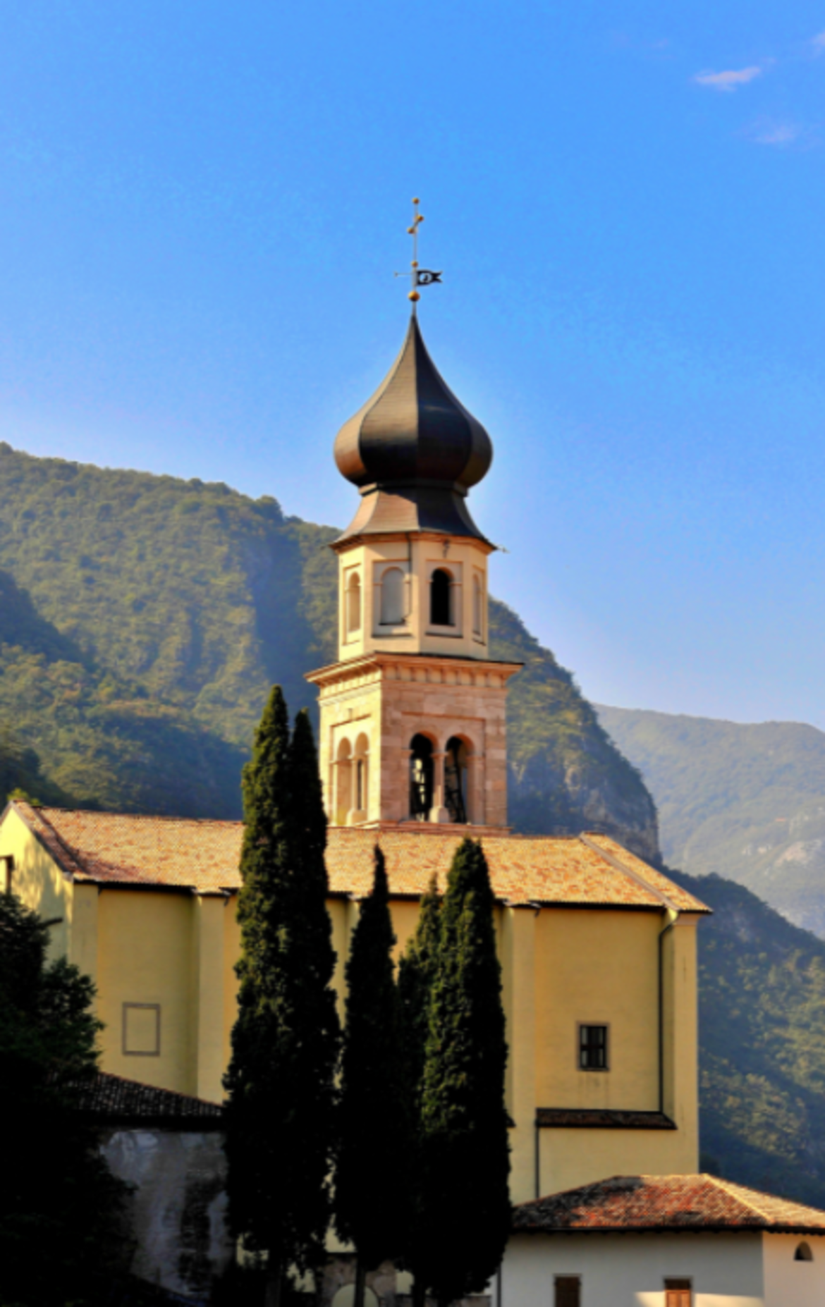 La Chiesa è situata nella parte alta della città. Di origini antichissime. Si considera sia sorta sulle spoglie di una cappella annessa all'antico castello, distrutto nell'ambito delle lotte medievali che divisero i Principi Vescovi di Trento e i Castelbarco.