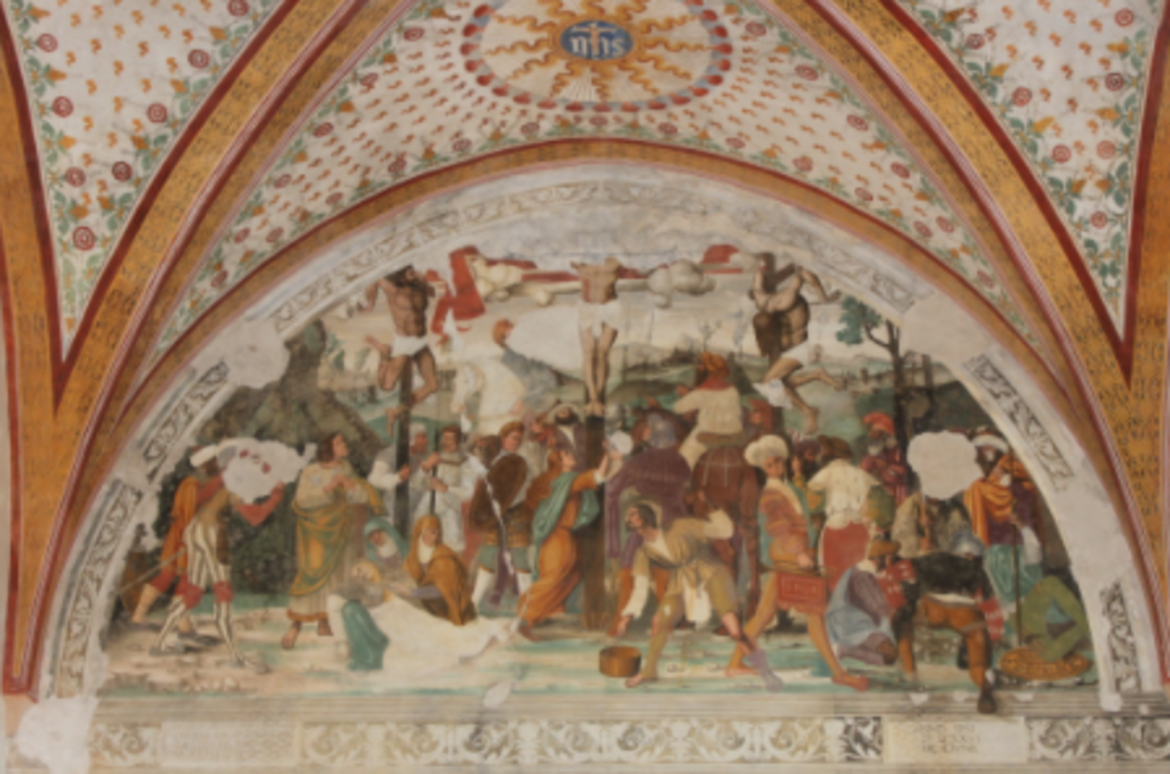 una grandiosa Crocifissione datata 1526, gremita di personaggi in abiti cinquecenteschi, con richiami al Rinascimento bresciano e mantovano.