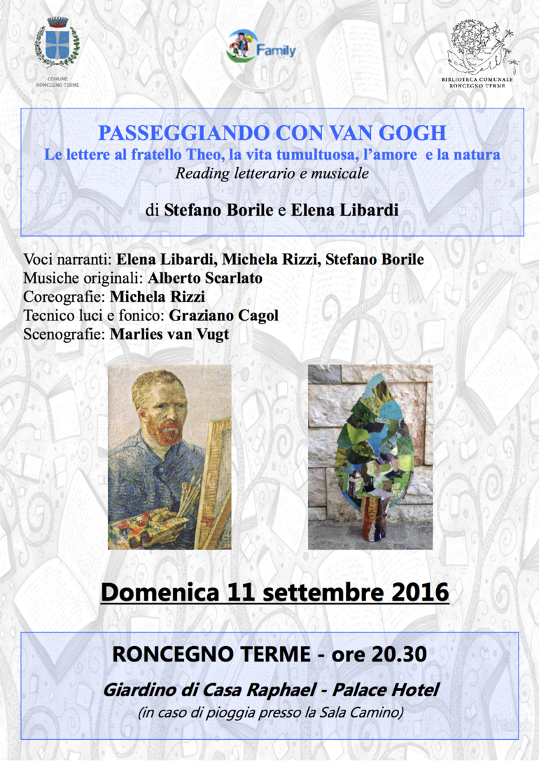 È una rappresentazione di teatro natura, che vuole porre l’accento sulla vita tumultuosa del grande pittore olandese. Le sue crisi d’arte si contrappongono alla sua voglia di vita e la chiusura sul mondo lo spingono a cercare la vera essenza dell’amore umano. Van Gogh riesce a stabilire un contatto con il fratello Theo, al quale scrive 668 lettere, scrive anche ad altri pittori del tempo e imbratta 1300 tele cercando di rubare la luce del giorno e annegandosi nella notte con il vino scaccia i fantasmi.