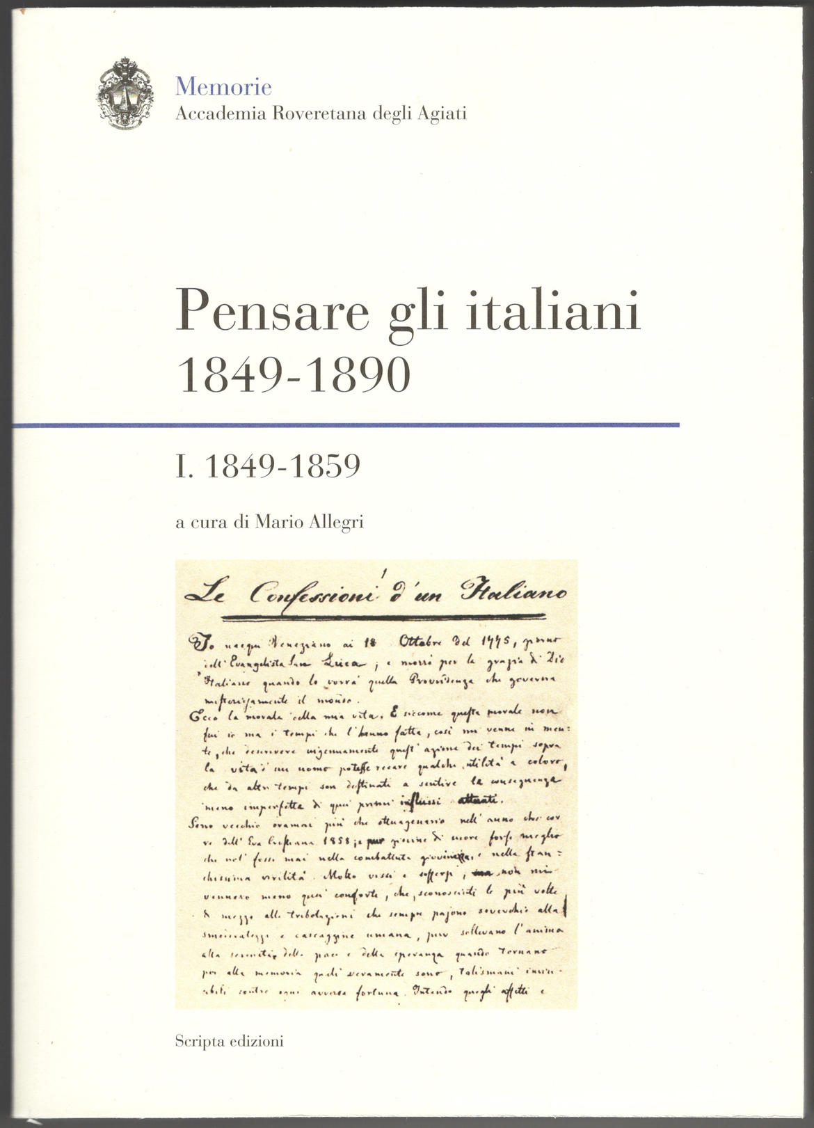 Mario Allegri (a cura di), Pensare gli italiani 1849-1890, vol.I 1849-1859, Scripta edizioni, 2021