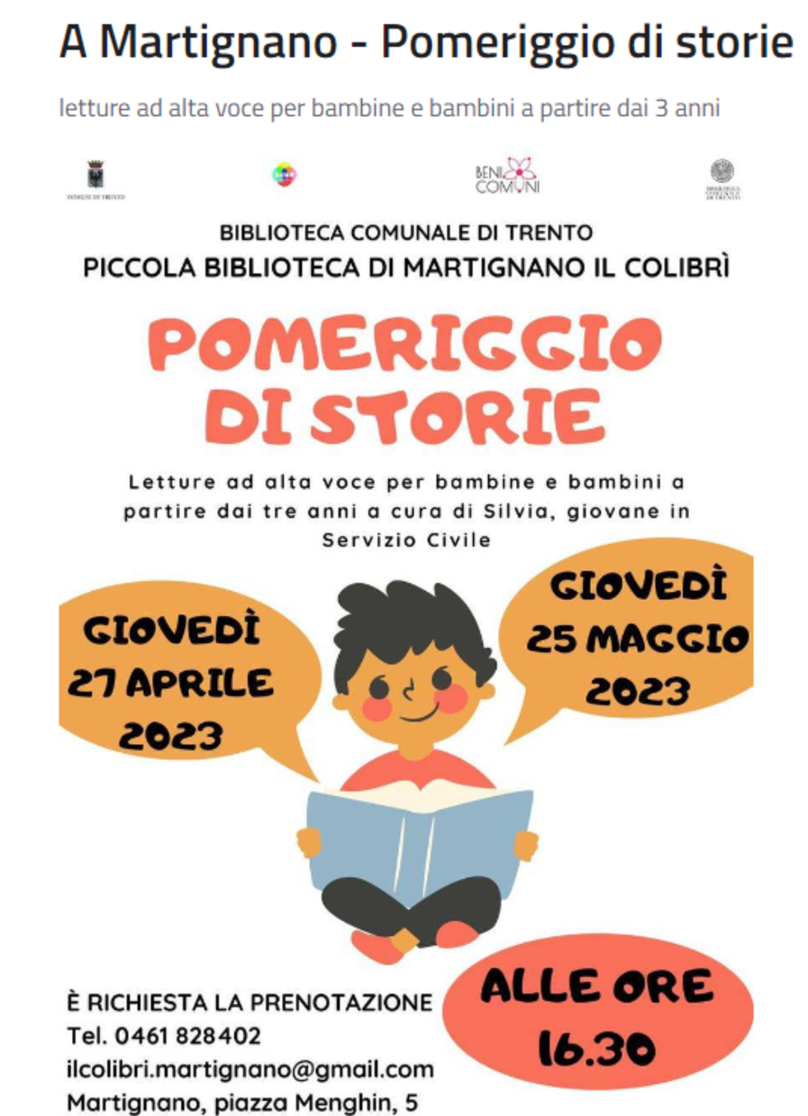 Prenotazione al numero 0461-828402 o mandando una mail a ilcolibri.martignano@gmail.com