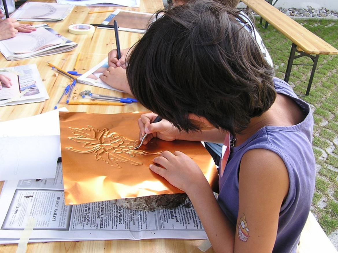 Laboratorio per famiglie per sperimentare la lavorazione del rame a sbalzo