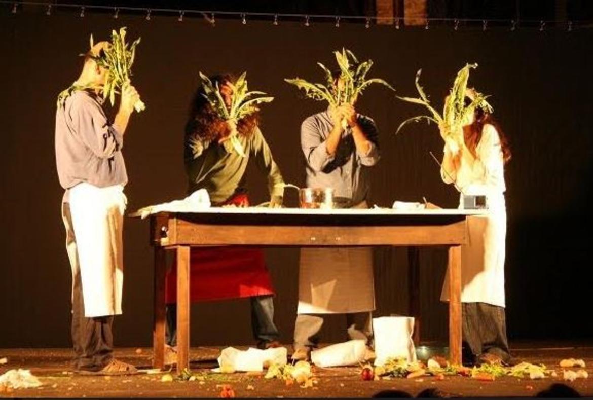 Per il pubblico quindi, più che varcare ladimensione di un mondo fantastico sarà come sentirsi invitati a cena a casa di amici. Con un menù tipicamente vegetariano: tra cavoli neri, carote, zucchine e cipolle, batterie di pentole, elmi di scolapasta e mantelli di carta assorbente lo spettatore si troverà a parteggiare ora per un Sandokan addomesticato dagli impegni ordinari della vita quotidiana, ora per un Yanez alle prese con il taglio dei ravanelli, ora per una Lady Marianna che sfida a duello un minestrone.