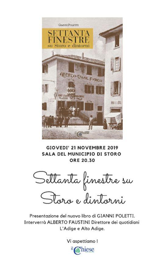 Alcuni li ho leggermente modificati e abbreviati o integrati. Il titolo, "Settanta finestre su Storo e dintorni", evidenzia la forma degli scritti: sono sguardi, più che trattazioni organiche, rivolti principalmente al territorio di Storo: momenti di storia e tradizioni, dialetto e organizzazione sociale, ambienti e atmosfere, a comporre 8 capitoli tematici.