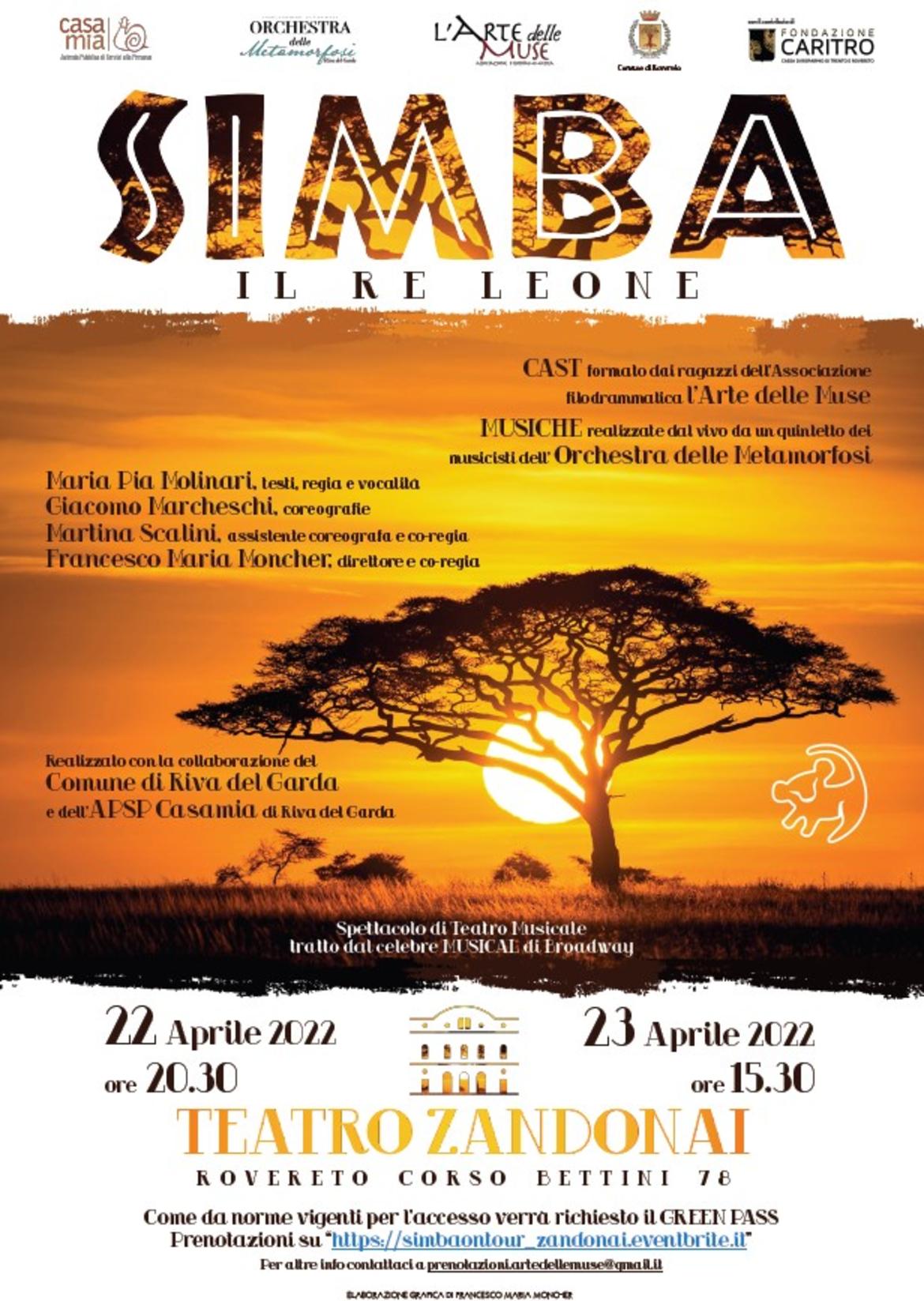 Il prossimo appuntamento è fissato, in collaborazione con "L' Orchestra delle metamorfosi", per il 22 aprile (h.20.30) e 23 aprile (h.15.30) al Teatro Zandonai di Rovereto con il Musical "Simba! Il Re Leone".