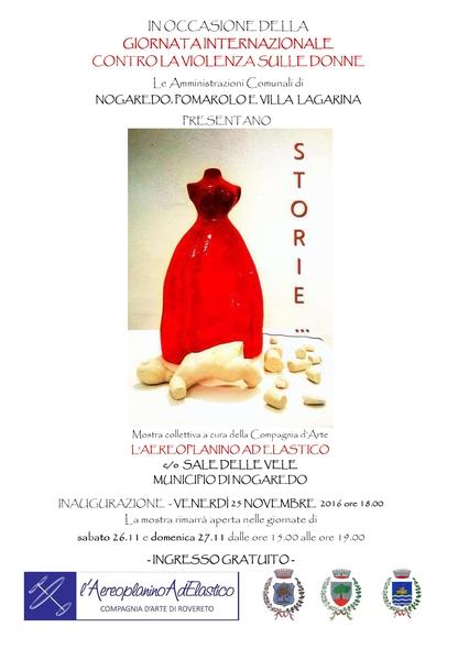 Nella Sala delle vele di Palazzo Candelpergher, in collaborazione col Gruppo d’Arte “L’Aereoplanino ad elastico”, verrà inaugurata la mostra collettiva dal titolo “Storie...”, che rimarrà aperta nei pomeriggi di sabato 26 e domenica 27 novembre dalle 15 alle 19.