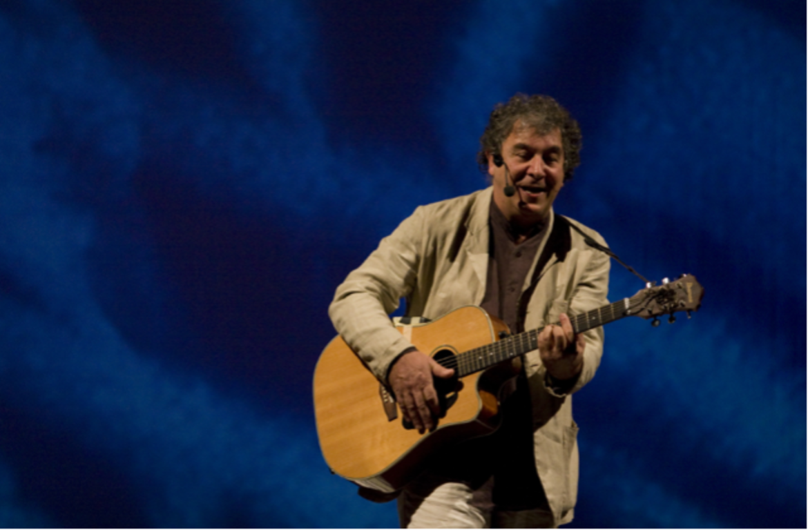 Ferruccio, come un vecchio cantastorie, con la sua chitarra canta e racconta storie e canzoni, ninna-nanne e rap, fiabe e sogni.