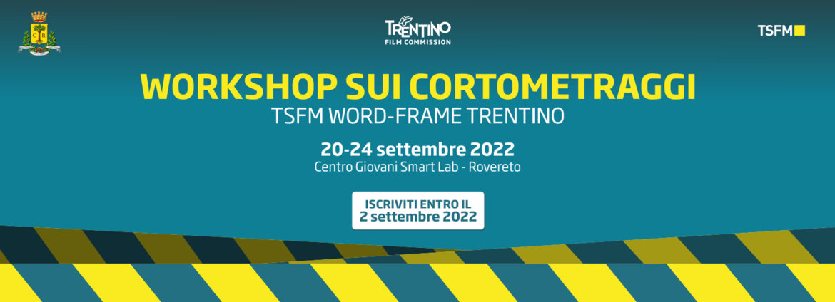 TSFM WORD-FRAME TRENTINO è un workshop intensivo di formazione per autori di cortometraggi, aperto a registi e/o sceneggiatori emergenti che avrà luogo presso il Centro Giovani Smart Lab di Rovereto da martedì 20 a sabato 24 settembre 2022 dalle 9.30 alle 17.00.
