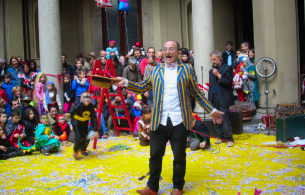 Uno spettacolo che nasce dall’incontro di due artisti, un mago comico imbonitore di folle e un clown giocoliere e mimo tuttofare.