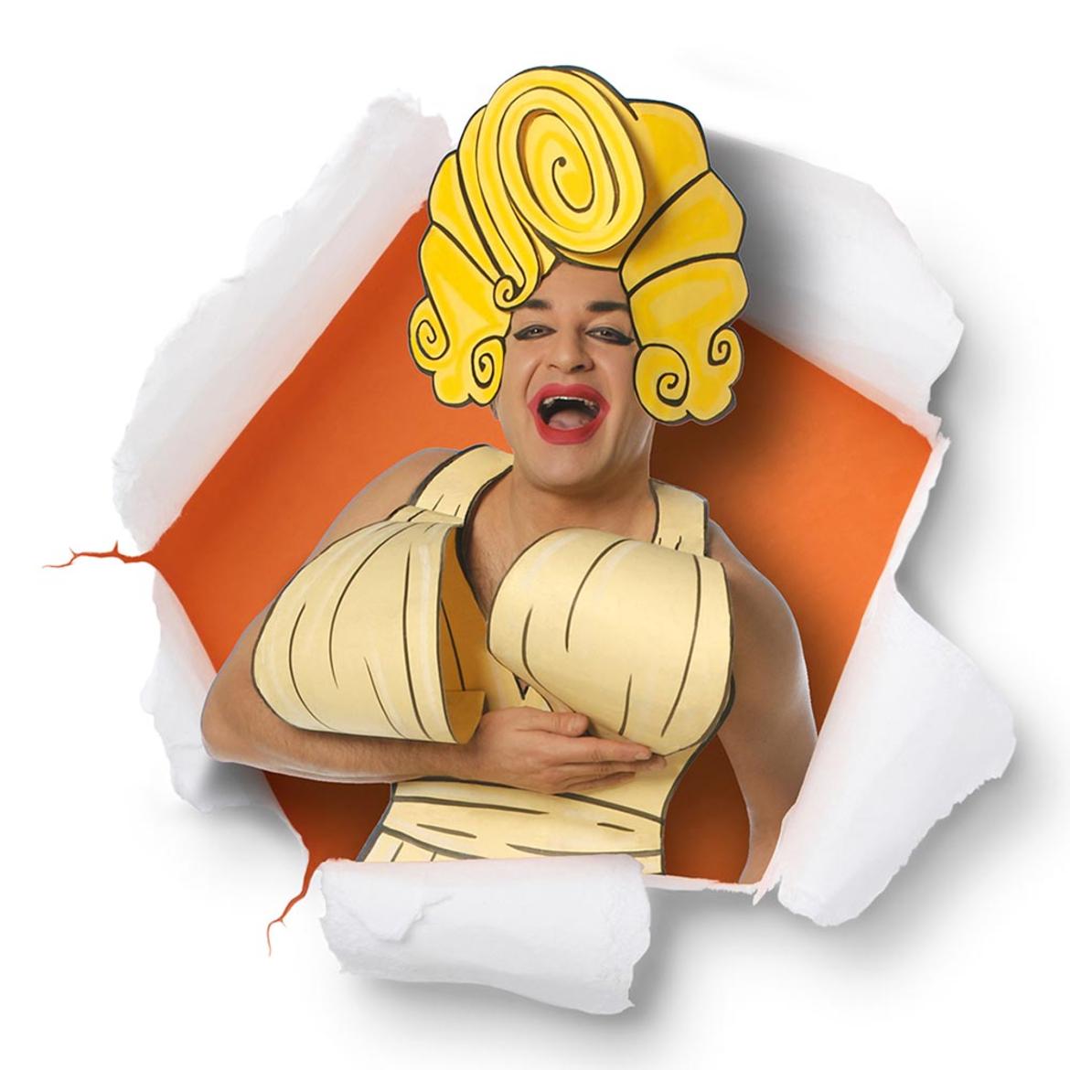 Maestro indiscusso del trasformismo teatrale, il veneziano Ennio Marchetto, con i suoi celebri costumi di carta, dà vita ad uno spettacolo che è una vera e propria Babilonia di creatività. The Living Paper Cartoon non ha confini, piace ovunque e a tutti, dai 7 ai 70 anni. Non è facile spiegare cosa esattamente succeda durante un suo spettacolo: ci sono dei costumi di carta, che raffigurano personaggi italiani e stranieri, e ad animarli c’è lui, straordinario performer capace di ripetere movenze e tic che rendono il tutto esilarante.