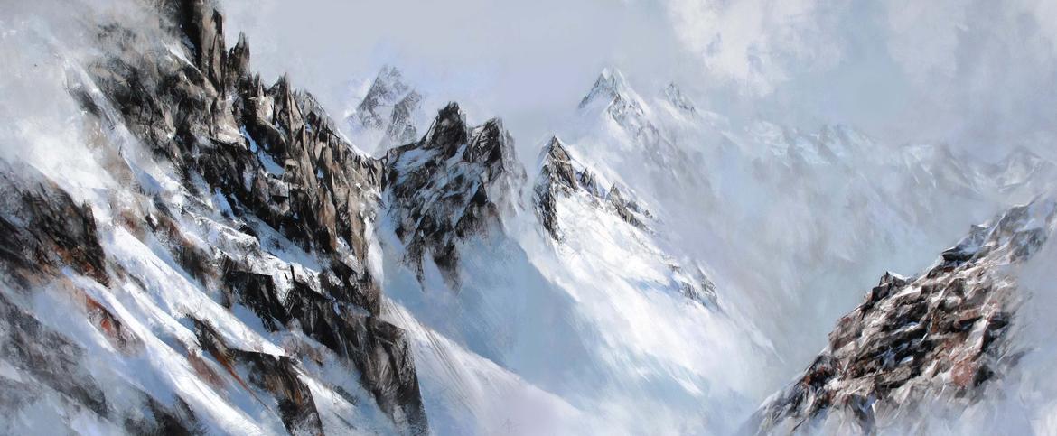 Colori pieni e vivaci, luci abbaglianti ed ombre minacciose, il fascino del silenzio, persino l’inconfondibile odore dell’aria pura e cristallina delle alte cime avvolgono l’incredulo osservatore trasportandolo in un mondo fantastico, ispirato dal reale ed immediatamente sublimato in una dimensione di divina eternità dalla felice mano del pittore. Un mondo popolato da nubi e da venti che sibilano giocando tra le alte cime, rifugio sicuro solo per pochi arditi animali ed in cui la presenza umana è sporadico, evanescente ricordo o improbabile, onirica visione.