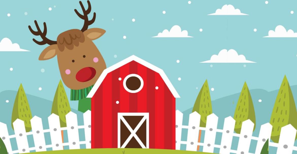 Gli animali della fattoria si svegliano e, accanto ai regali, trovano una renna che russa.