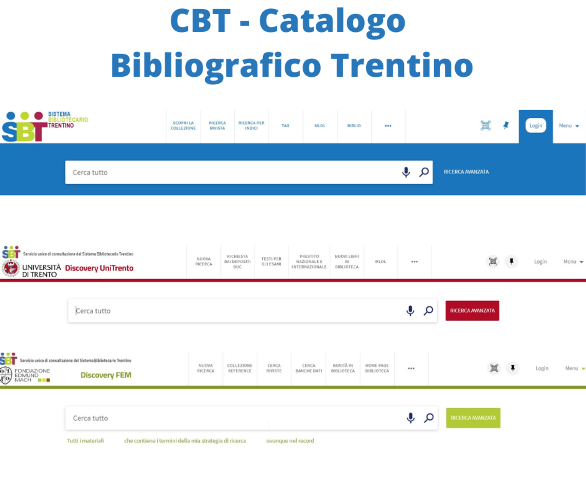 Al CBT, infatti, si può accedere attraverso tre portali di riferimento: quello del Sistema Bibliotecario Trentino, quello dell’Università di Trento e quello della Fondazione Edmund Mach.