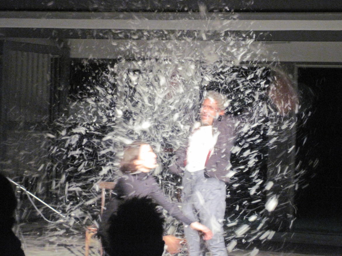 “Splendida serata... tutti incantati... come bambini... “. Questo un altro commento da parte del pubblico che ha assistito alla storia che raccontava come su di una spiaggia in riva al mare, un giorno venne ritrovato un vecchio angelo dalle enormi ali piumate. Sfinito soffiava nella sabbia i suoi ultimi respiri. Nello spettacolo, un salto indietro nella sua vita, dove personaggi crudeli e orribili si sono intrecciati ad altri più buoni e delicati in un susseguirsi di situazioni tragicomiche ed avventurose. C’era poesia, divertimento e riflessione in questi personaggi così reali da poterli riconoscere come nostri simili. Solo l’angelo sembrava il frutto di uno scherzo e invece si è rivelato il più umano di tutti.