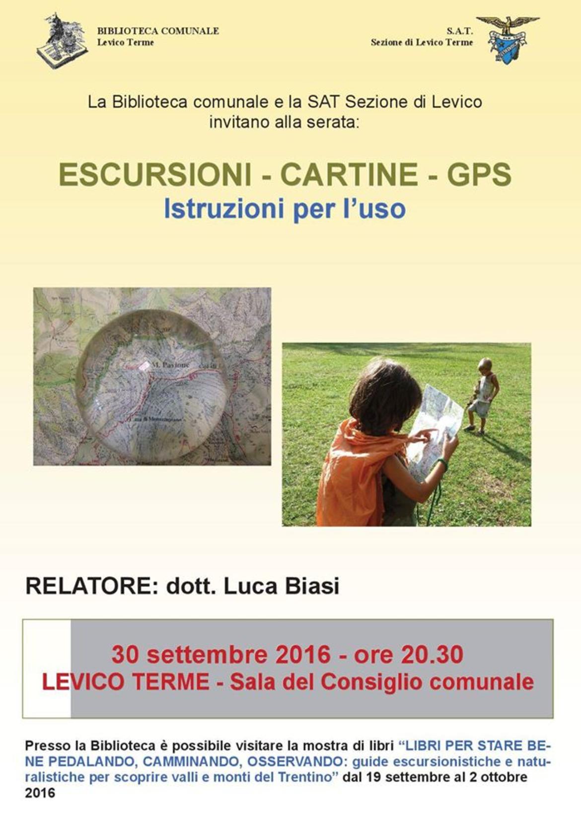 Una piccola anticipazione sul tema si potrà avere venerdì 30 settembre ad ore 20.30 in Sala Consiliare presso il Municipio di Levico (via Marconi, 6). In programma la serata informativa “Escursioni – cartine – gps: istruzioni per l'uso”. L'ingresso è libero.