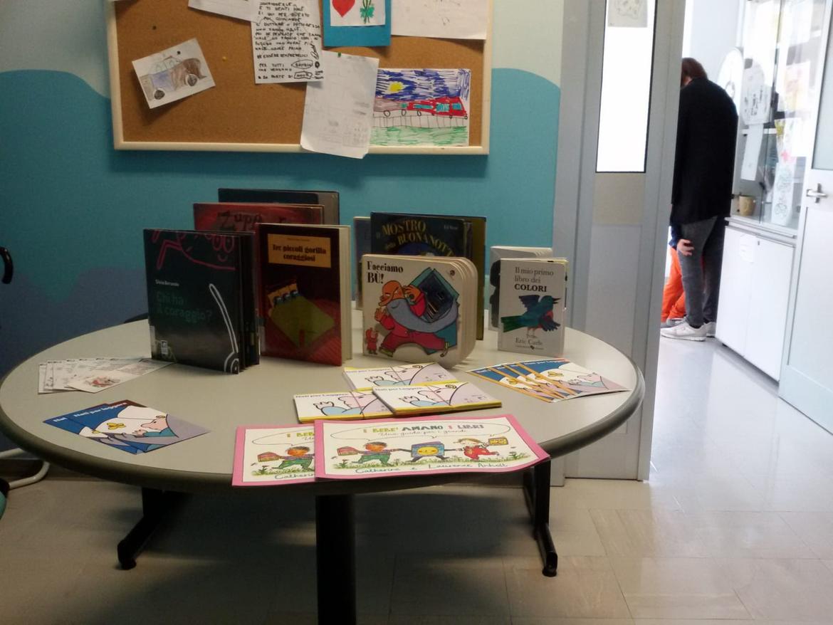 Ogni giovedì mattina le volontarie allestiscono la zona antistante l’ambulatorio pediatrico con i libri di Nati per Leggere: i piccoli ospiti, sia quelli di passaggio che quelli ricoverati, sono molto incuriositi dalle copertine colorate. Ben volentieri si lasciano coinvolgere dalle storie: a volte le ascoltano dalla voce delle volontarie, altre volte prendono un libro e se lo fanno leggere dalla mamma o dal papà.