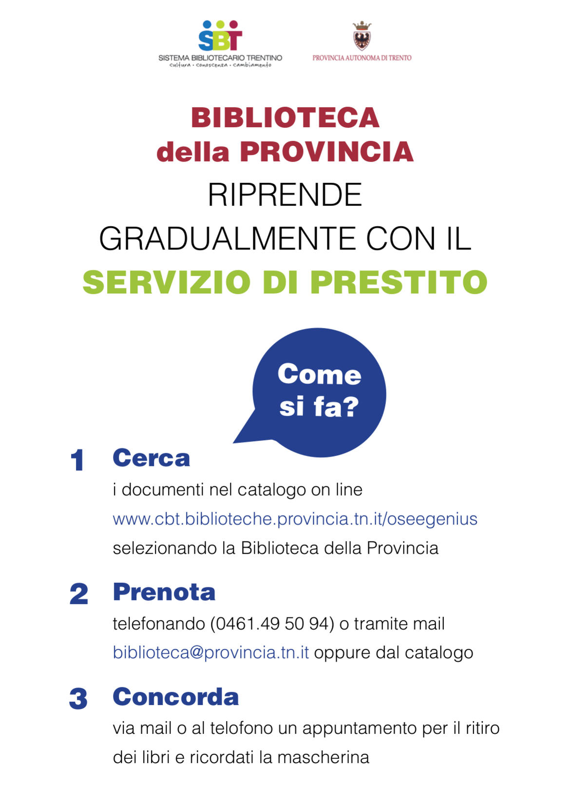 La Biblioteca della Provincia riprende gradualmente l'attività