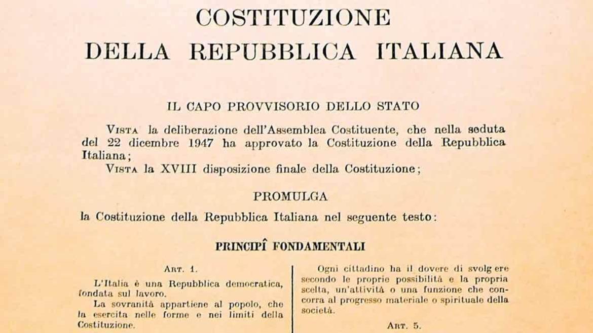 Il 22 dicembre 1947 l’Assemblea Costituente insediatasi a Montecitorio l’anno precedente approvava il testo della Costituzione della neonata Repubblica italiana. Composta da 139 articoli, la nuova carta costituzionale era il risultato del compromesso tra le maggiori correnti politiche rappresentate nell’Assemblea: i cattolici, i comunisti, i socialisti e i liberali.