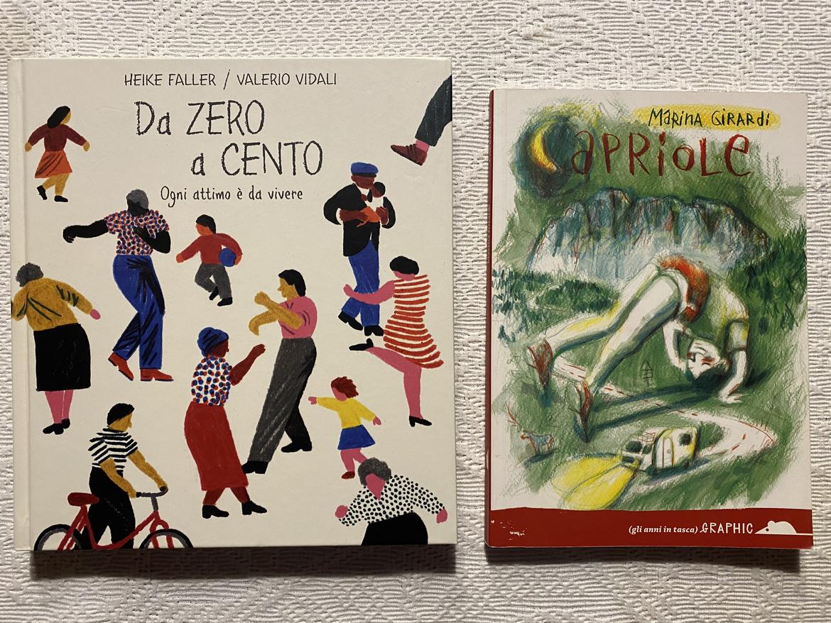 L’(im)possibile accoppiata è caduta su “Da zero a cento. Ogni attimo è da vivere” di Heike Faller e Valerio Vidali per DeAgostini (2019). I risguardi dicono subito in che atmosfera ci troviamo: fai volare via i semi del tarassaco e intanto esprimi un desiderio. E poi la narrazione si dipana da 0 anni fino a 99, quando ti viene domandato: “Hai imparato qualcosa dalla vita?” E una bellissima cangiante farfalla vola via fino a posarsi sul tarassaco in fiore dell’ultimo risguardo. Nel mezzo ci sono persone con le loro speranze, i loro accadimenti, i pensieri, gli amore, i lutti, le gioie, i dolori. Insomma vite! Vite che si avvolgono con quelle degli altri o su se stesse. I volti non sono mai precisati ma ti sembra di conoscere tutte quelle individualità: tua figlia con i suoi dieci anni, il tuo compagno di 50, i tuoi genitori sugli ottanta, gli amici, i parenti, i colleghi: ci sono tutti in un campionario che spaventa per quanto è tangente alla realtà.
