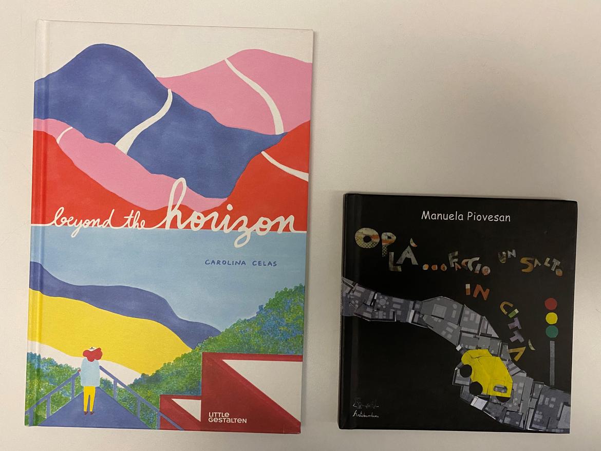 L’assonanza è stata un gioco agli opposti: “Oplà faccio un salto in città” di Manuela Piovesan per Artebambini (2015), fa rimanere in città, trasformandola in un divertimento di cerchi, strisce, rettangoli, forme ondulate. Il piccolo e quadrato libretto racconta in maniera simbolica il viaggio attraverso una metropoli di un bambino con il suo papà: ci sono i semafori, il parco nel quale fermarsi per giocare un po’ a palla, ci sono le gru che costruiscono altissimi grattacieli, i taxi, il circo, la biblioteca, il cinema e lo zoo. Insomma c’è tutto in città ma proprio per questo spesso ci piace andarcene via e correre verso le bianche montagne.
