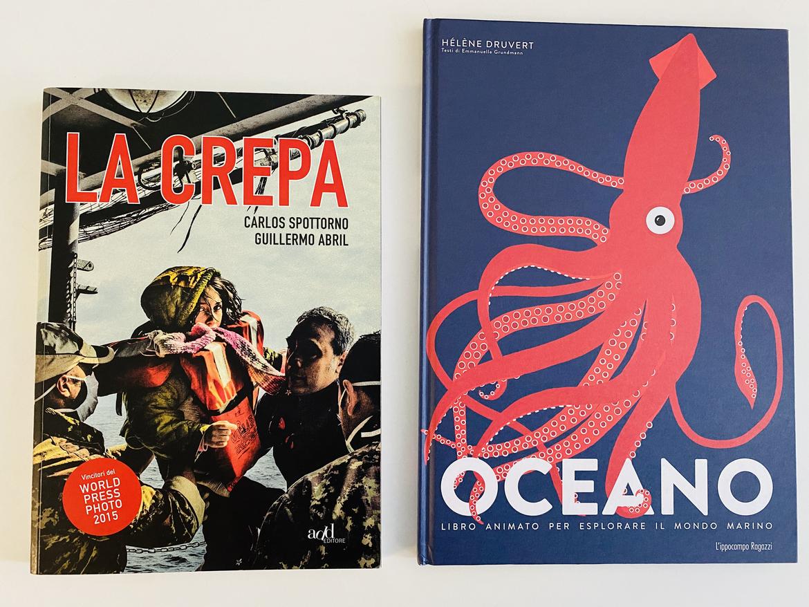“Oceano. Libro animato per esplorare il mondo marino” di Hélène Druvert e Emmanuelle Grundmann per L’ippocampo Ragazzi (2019) è un albo illustrato di divulgazione. Pagina dopo pagina immerge nell’affascinante mondo marino mettendo in primo piano le conoscenze essenziali e gli approfondimenti per comprendere quale magnifico ecosistema siano i mari della Terra.
