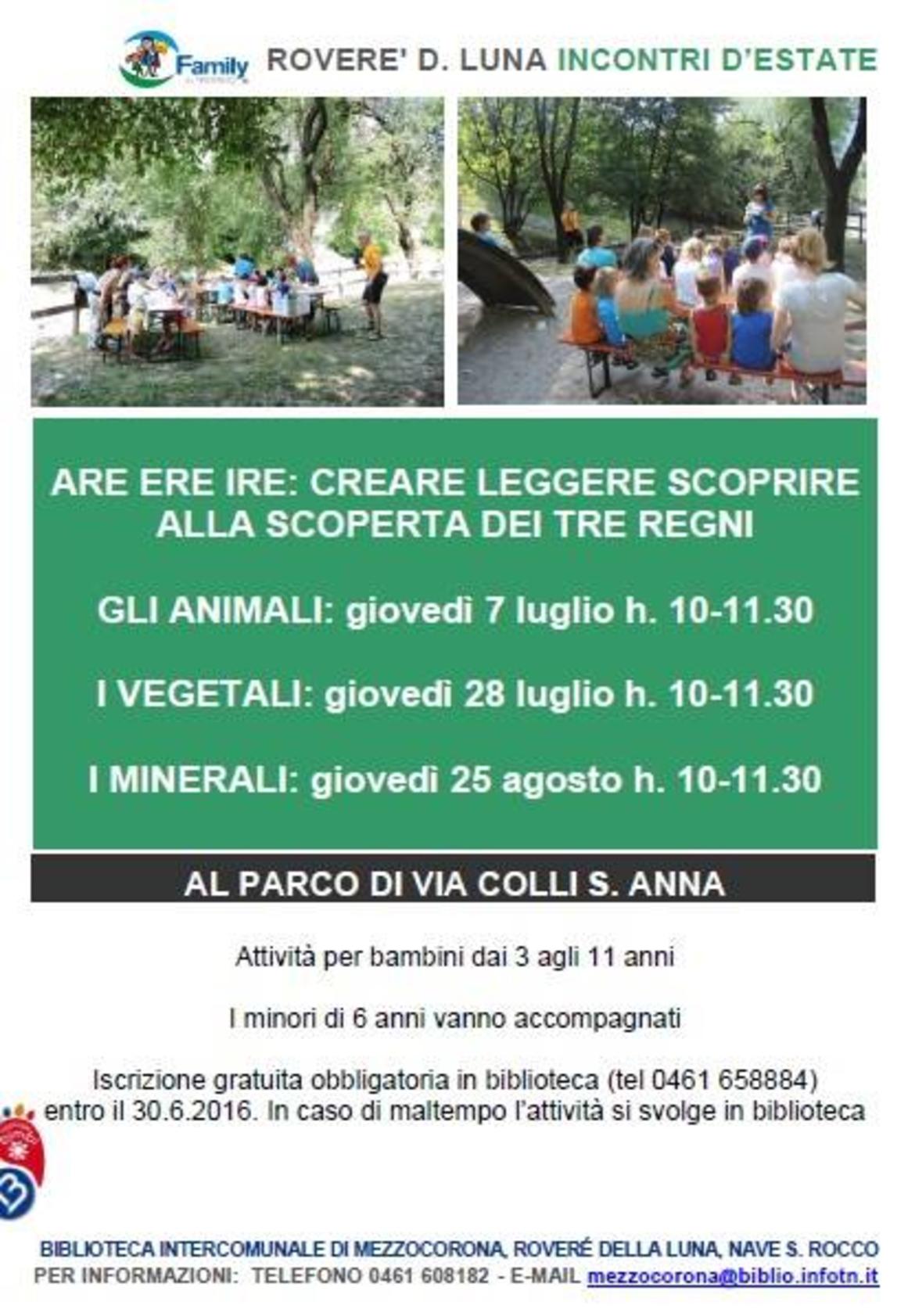ARE ERE IRE CREARE LEGGERE SCORPIRE alla scoperta dei tre regni a Roverè della Luna