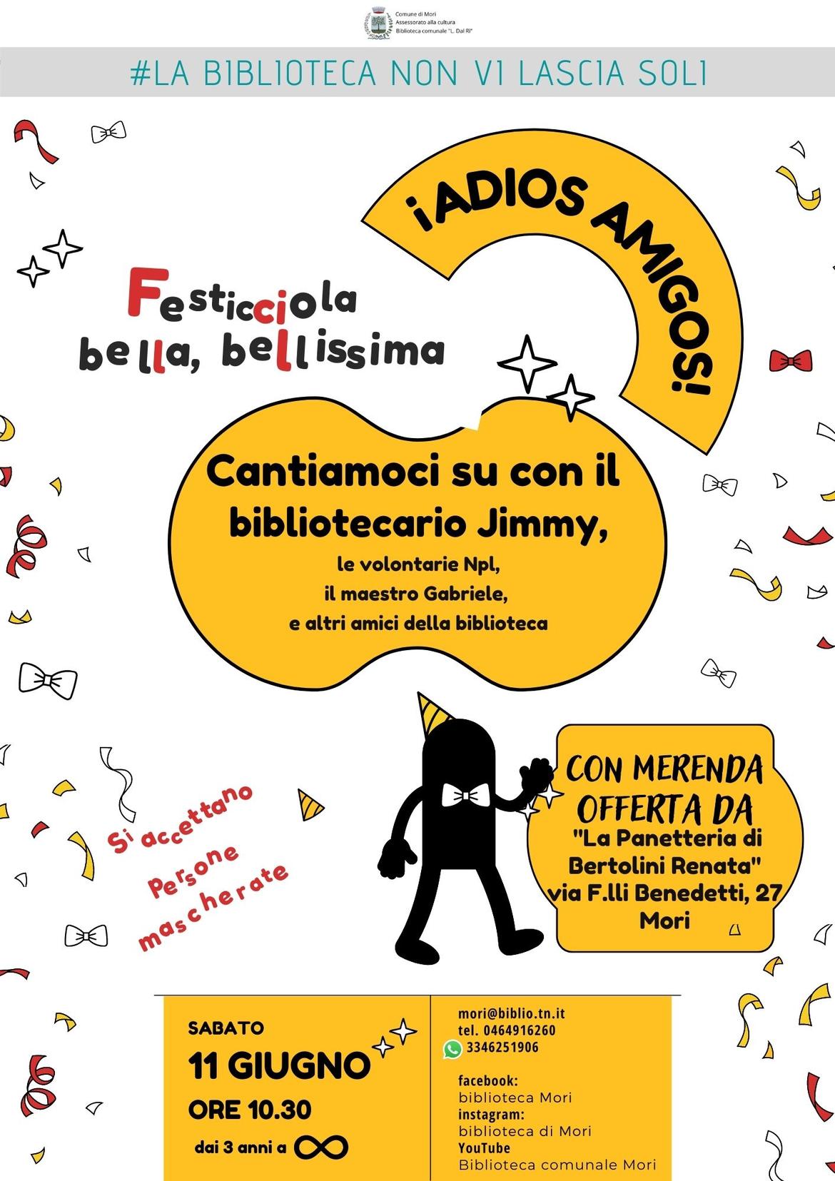 Cantiamoci su con il bibliotecario Jimmy, le volontarie Nati per Leggere, il maestro Gabriele e altri amici della biblioteca.