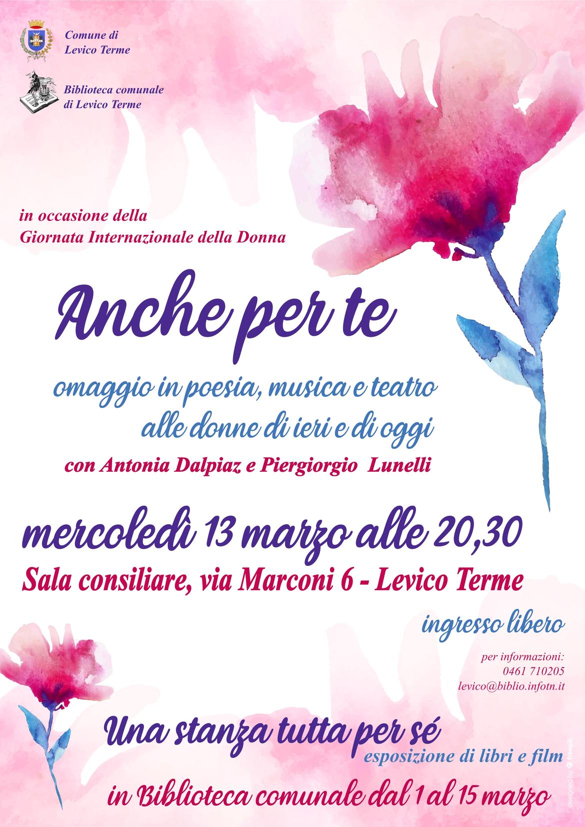 In occasione della Giornata internazionale della donna, il Comune di Levico Terme e la Biblioteca comunale invitano all'appuntamento con Antonia Dalpiaz e Piergiorgio Lunelli.