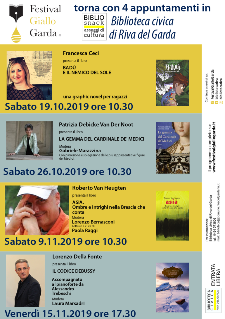 Da sabato 19 ottobre a venerdì 15 novembre tornano a Riva del Garda gli incontri con gli scrittori per accendere sul lago la “passione gialla”.