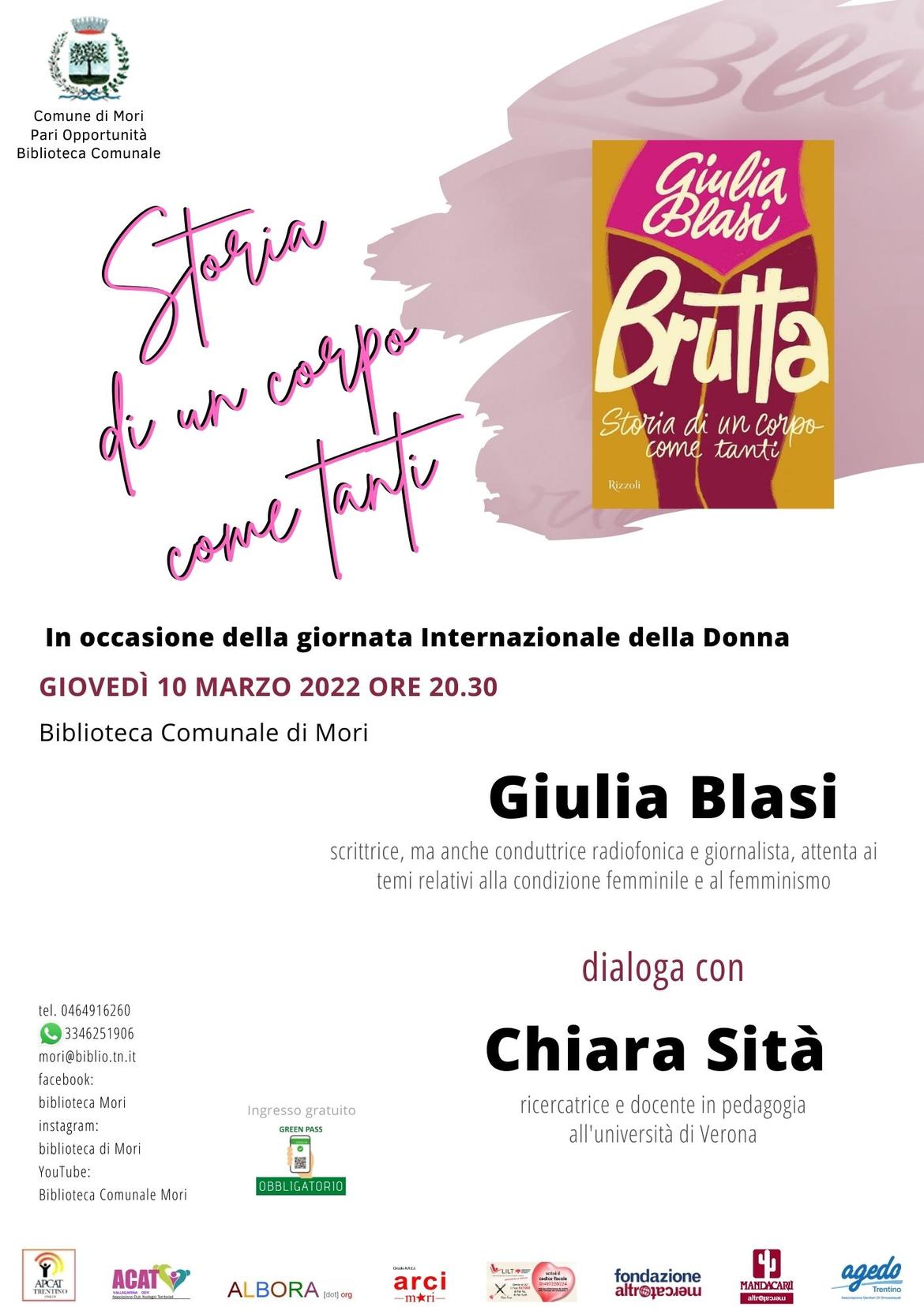 Giulia Blasi, scrittrice, ma anche conduttrice radiofonica e giornalista, attenta ai temi relativi alla condizione femminile e al femminismo, dialoga con Chiara Sità, ricercatrice e docente in pedagogia all'Università di Verona.