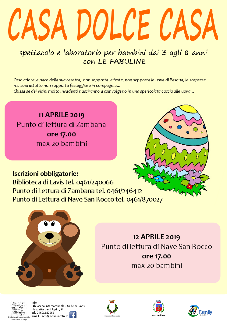 Nell'attesa della Pasqua la Biblioteca intercomunale di Lavis-Terre d'Adige organizza, nelle sedi dei Punti di lettura, lo spettacolo a cura delle Fabuline.
