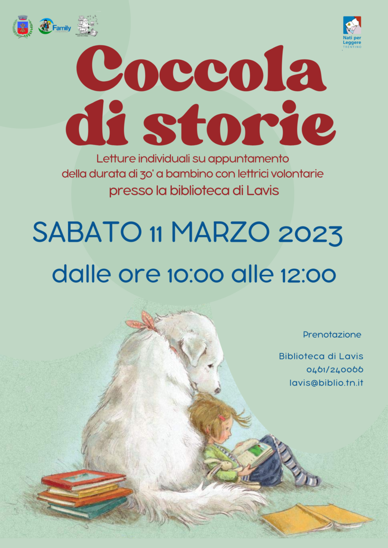 Sabato 11 marzo dalle ore 10.00 alle ore 12.00 ogni bambino potrà essere coccolato con una storia scelta appositamente per lui dalle volontarie del Progetto Nati per Leggere.