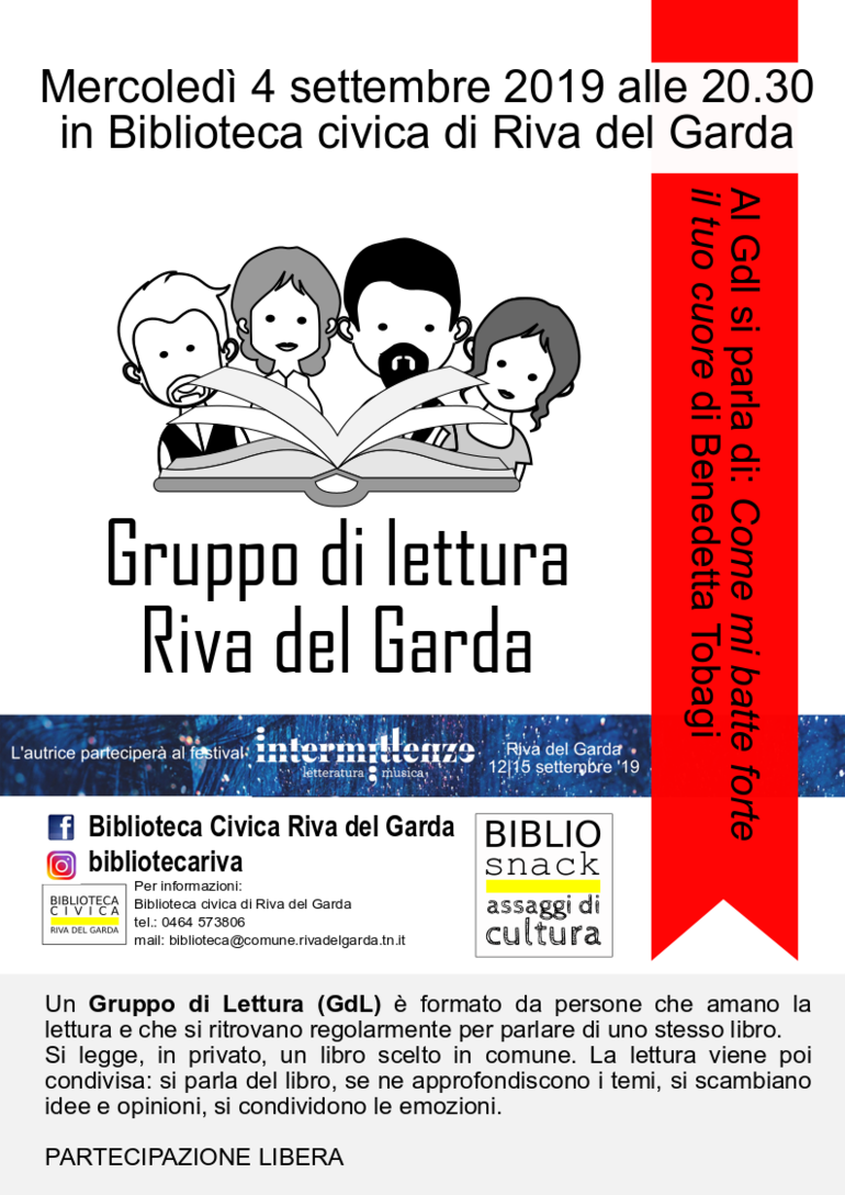 Il Gdl di Riva del Garda nasce per iniziativa della biblioteca civica nella primavera 2019 riscontrando subito forte interesse e partecipazione attiva da parte dei partecipanti.