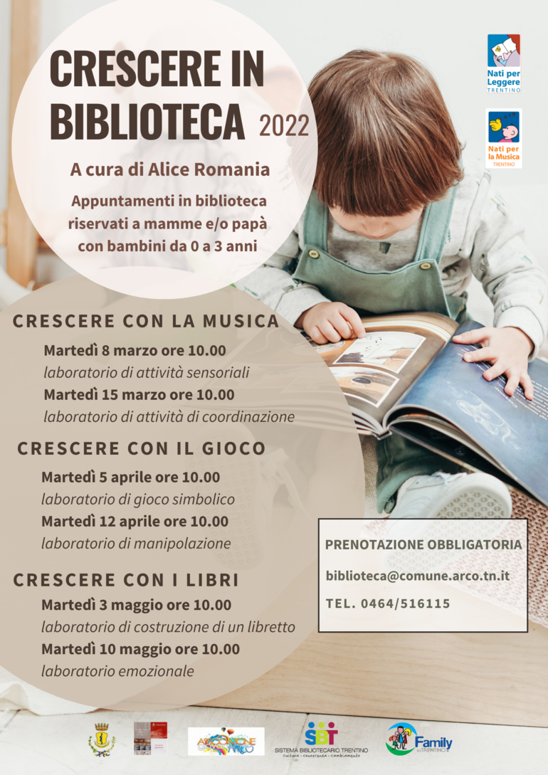 Prenotazione obbligatoria chiamando la biblioteca al numero 0464/516115 o scrivendo una mail a biblioteca@comune.arco.tn.it.