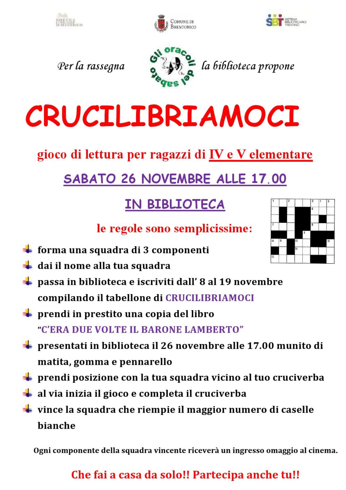 Iscrizioni in biblioteca dall'8 al 19 novembre.