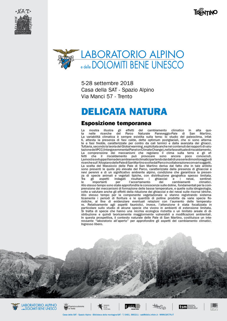 La mostra sviluppa il tema dei cambiamenti climatici partendo dai dati di una serie di monitoraggi e di ricerche sull'Altopiano delle Pale di San Martino svolte dal Parco in collaborazione con vari soggetti.