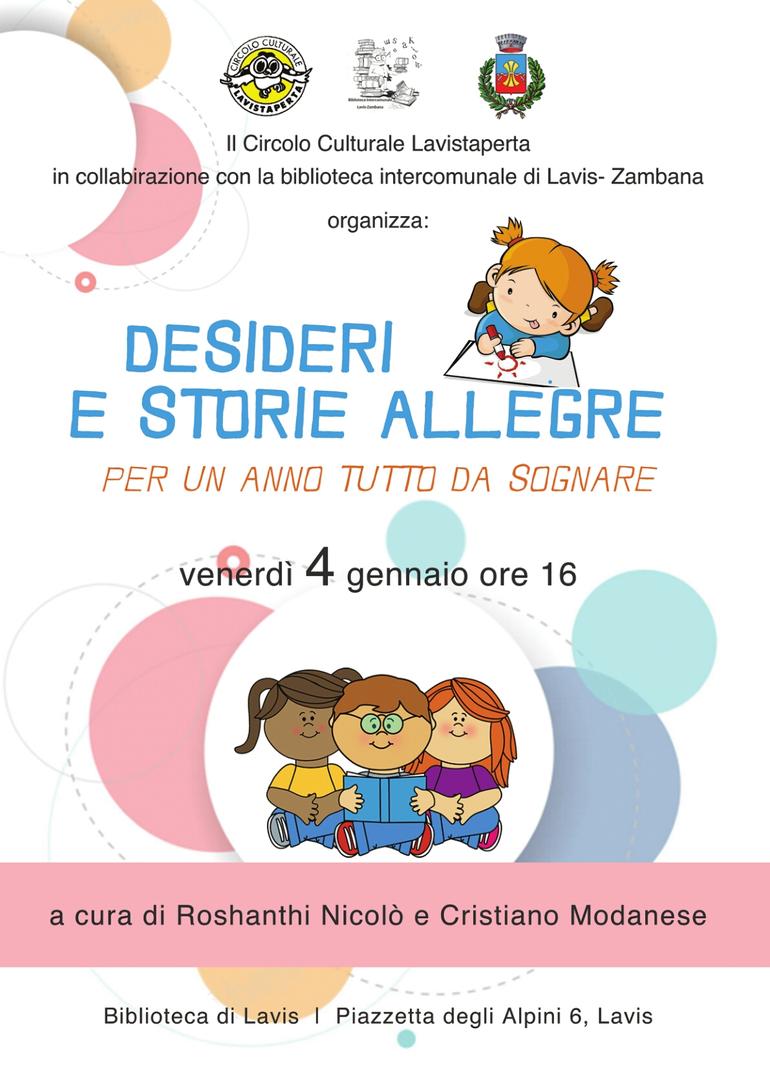 Il Circolo culturale Lavistaperta in collaborazione con la Biblioteca organizza Desideri e storie allegre per un anno tutto da sognare, storie proposte da Roshanthi Nicolò e Cristiano Modanese.