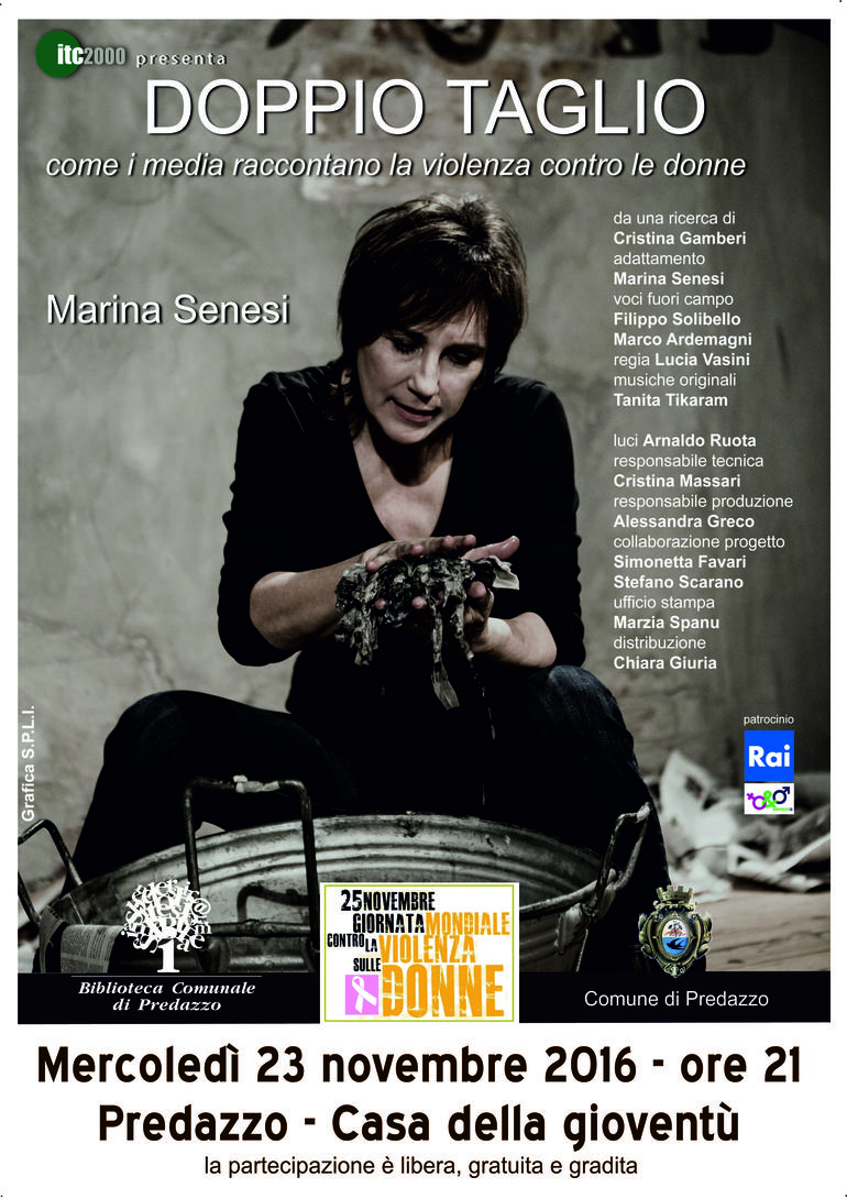 Con il Patrocinio di Pari Opportunità RAI, ITC 2000 presenta Doppio Taglio, spettacolo che affronta la tematica della violenza contro le donne, distinguendosi per la scelta di uno sguardo trasversale: non il racconto della vittima, né quello di un testimone, tanto meno del carnefice ma il disvelo di alcuni meccanismi che agiscono sotto traccia, attraverso i quali il racconto dei media può plasmare la nostra percezione del fatto, trasformando anche la più sincera condanna in un’arma, appunto, a doppio taglio.