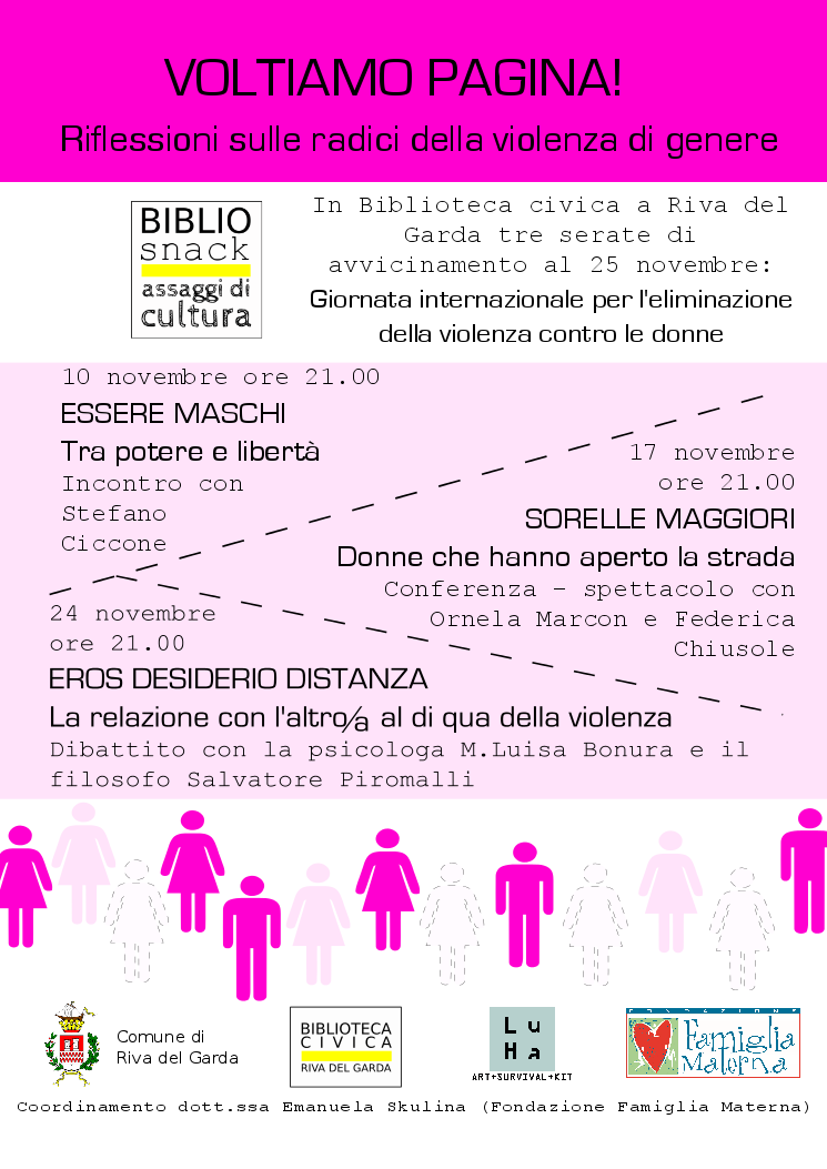 La serata fa parte della rassegna Voltiamo pagina! Riflessioni sulle radici nella violenza di genere: tre serate di avvicinamento al 25 novembre, Giornata Internazionale per l'Eliminazione della Violenza contro le donne.