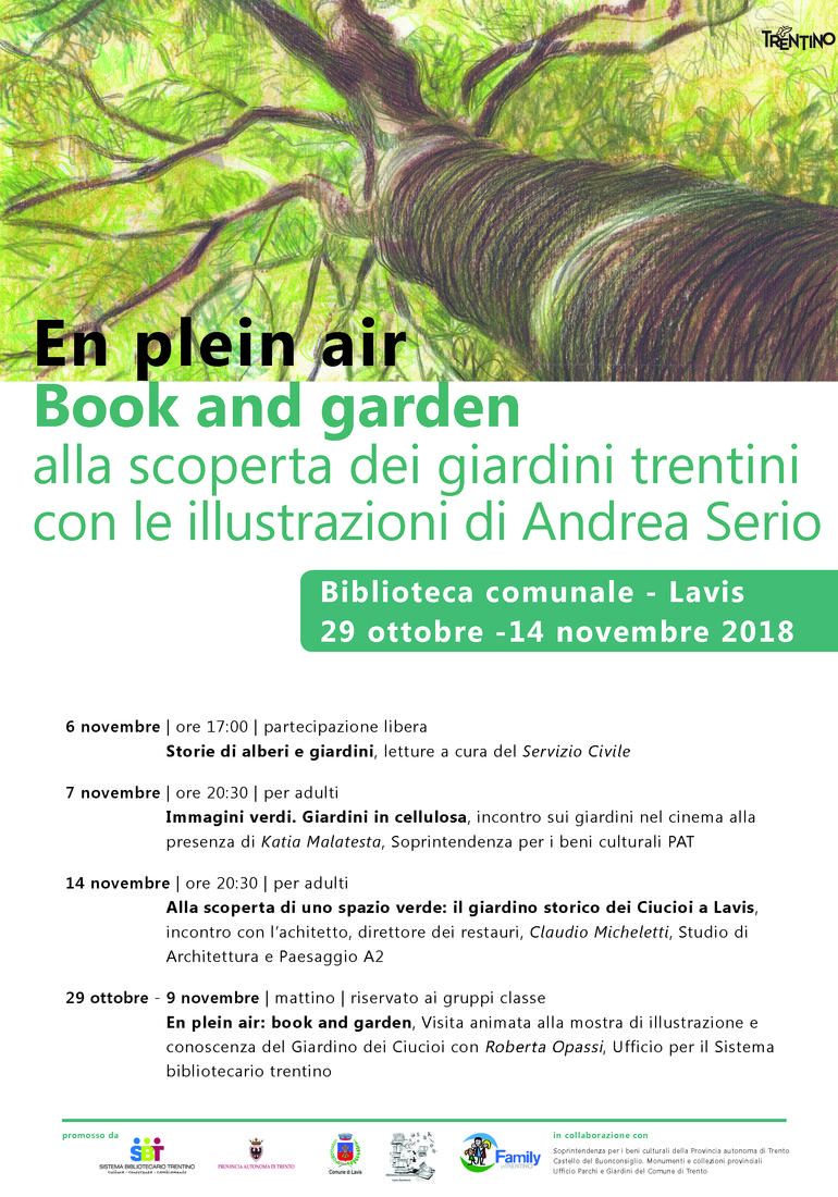 La mostra espone le illustrazioni di Andrea Serio tratte dal libro En plein air : all'aria aperta per osservare, conoscere e disegnare i giardini storici del Trentino e gli spazi verdi vicino a casa tua di Giulia Mirandola e Andrea Serio (con la collaborazione di Lia Camerlengo, Roberta Opassi e Alessandro Pasetti Medin).