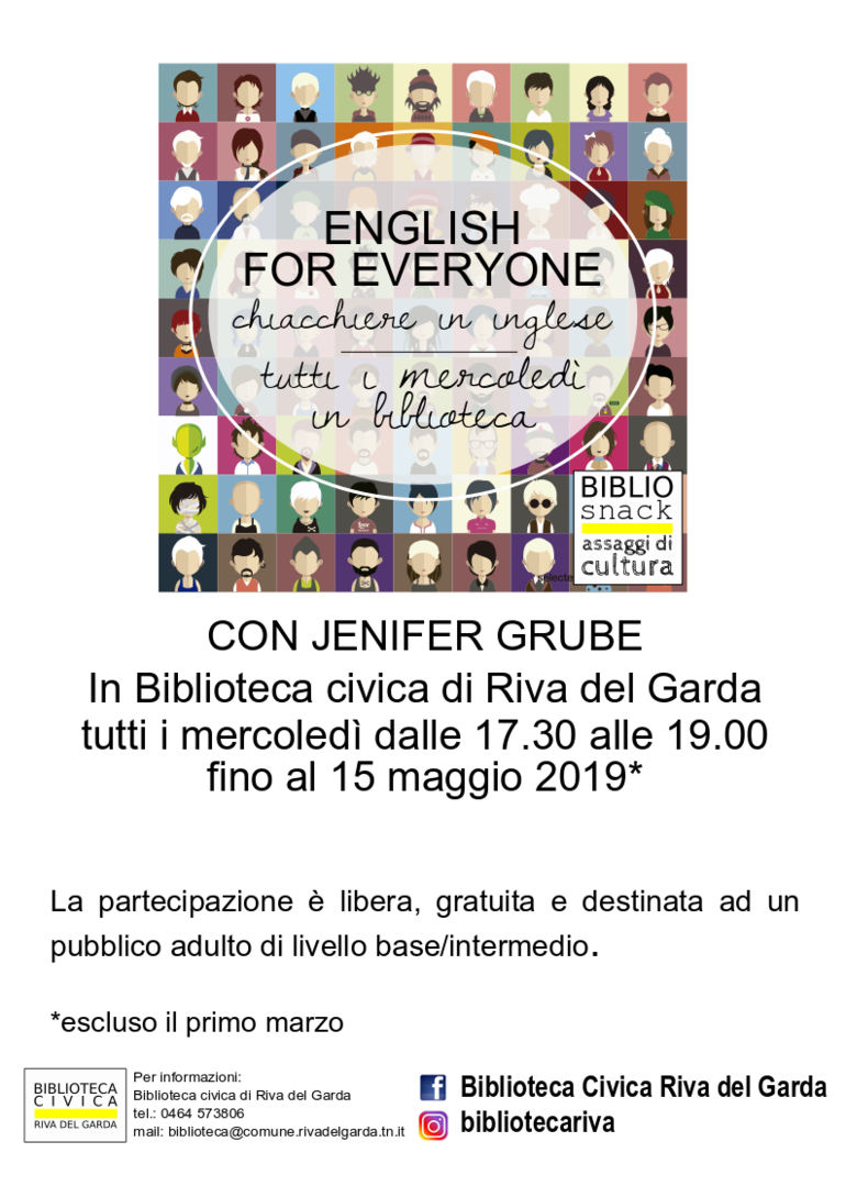 In Biblioteca tutti i mercoledì dalle 17.30 alle 19.00 fino al 15 maggio 2019.