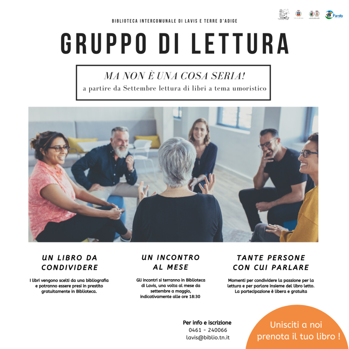 Se avete la passione per la lettura e vi piace trovarvi in compagnia di altre persone per momenti di condivisione di pareri questo gruppo fa proprio al caso vostro. La partecipazione è gratuita e libera.